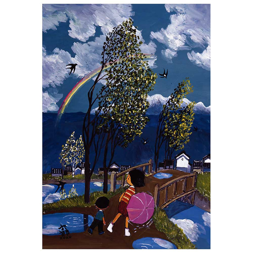 He also leaves many works such as murals, wax dyeing, and picture books. He interacted with special schools such as Nemunoki Gakuen and focused on welfare activities such as teaching painting. His imaginative style, which gazes at the many spectacles that revived in his heart, such as his childhood memories and hometown, with his gentle eyes, continues to fascinate the hearts of many people.