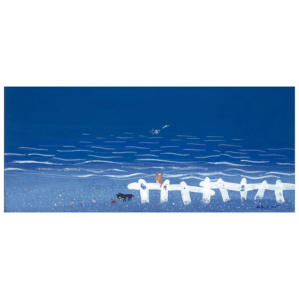 His works, which expressively portray the animals close to him from a unique perspective, and are full of poetic sentiment with warm, rich, and sometimes lovely expressions, attract many fans. He also produces landscape paintings for Europe and Japan. He volunteers by providing pictures on the cards of the Japan Animal Welfare Association and the UNICEF Association.
